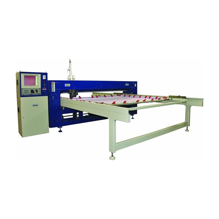 【Main Features】 The advanced control software is applied and technical performance has been highly improved. Instead of the traditional synchronization structure for the transmission shaft, it applies all servo electronic transmission structure on the needle and rotating shuttle, which is advanced technology in the world. The maximum speed is up to 2600RPM. The machine has the function of thread break detecting with high sensitivity. When it is activated, the system will stop the machine automatically once the thread breaks to allow manual mend. Simulative display of the design quilted. Display of working speed, reasons for stop, stitch, coordinates and design file directory, etc. A lot of designs can be read from U disk and stored in memory for a long term, which will be selected by operator. During the course of quilting, once it occurs power cut or shut off, designs or parameters that have been already set will still be saved in the computer for resuming the original designs while it is electrified. After the reinforce quilting parameters are set, return stitches will be realized automatically in a specified position. When there is a corner during the course of quilting, the quilter will reduce the speed automatically. Machine head and frames are allowed to move at low or high speed. The machine greatly simplifies the transmission structure, prolongs the service life and reduces the maintenance cost.